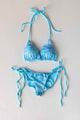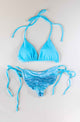 El diseño está inspirado en las olas del mar caribe. El lado en color azul turquesa es favorecedor para pieles blancas, sin embargo, una piel bronceada luce más coqueta con los azules en degradé de las olas del mar.