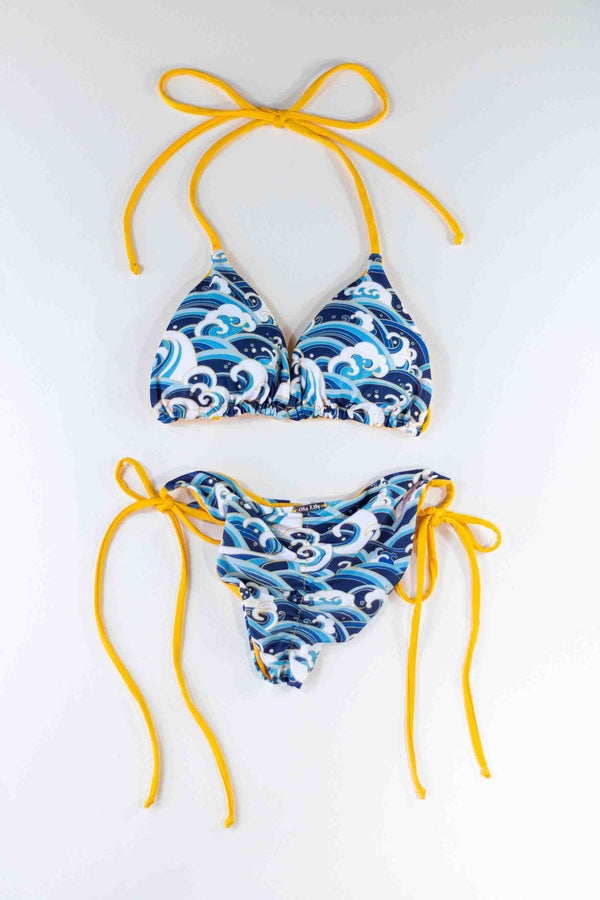 ¡La elegenacia hecha bikini! nuestro Pacific Lily tiene un atractivo diseño que resalta con los azules y el amarillos de la tela.
