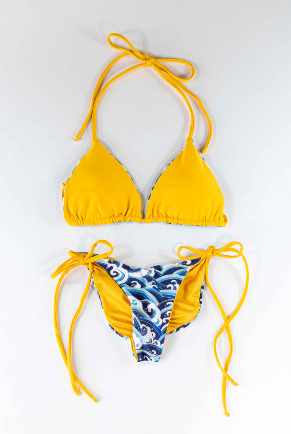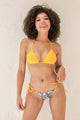 Una vez bronceada, viste tu bikini del lado amarillo para resaltar el canela de tu piel.