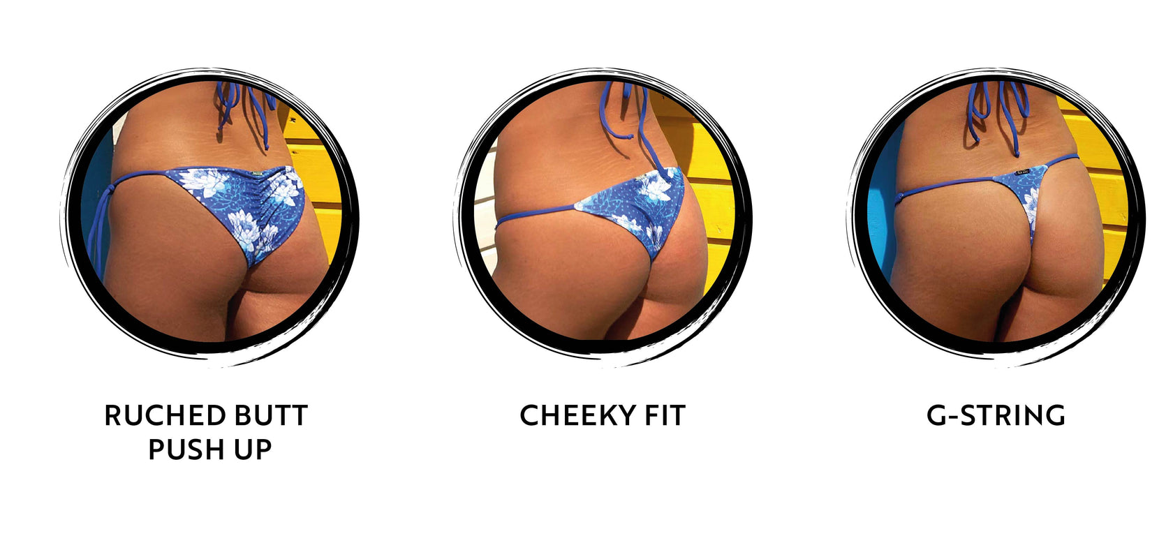 Bikini parte inferior: se ajusta en la parte lateral. Todos los bikinis son de corte bajo